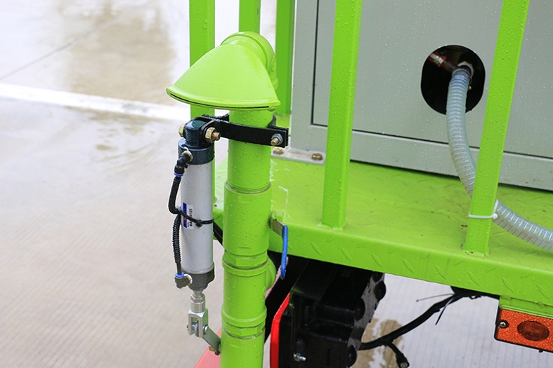 是在行走機構上加裝大容積水罐、高效遠程霧炮系統、低壓沖洗灑水系統、綠化灑水高炮(選裝,在罐體前端)、液壓系統、專用的作業和行走電控系統等改裝而成,其性能在國內處于**水平。